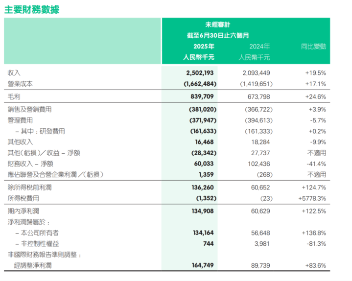 数据显示,截至2025年6月30日止,平安好医生实现总收入人民币25.02亿元,同比增长19.5%;归母净利润更是达到了1.34亿元,同比激增136.8%。